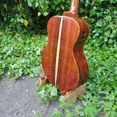 All materials used on these handmade guitars are the highest quality that can be found. All tops are AAA and better, as well as the bracewood. The back and sides will always be made with the highest quality as well and would be determined by the luthier and customer based on discussions surrounding the type of sound you are looking for. All fretboards, headstocks, and bridges are chosen for style and look. All bindings are solid wood. The logo and fret markers are Mother of Pearl.